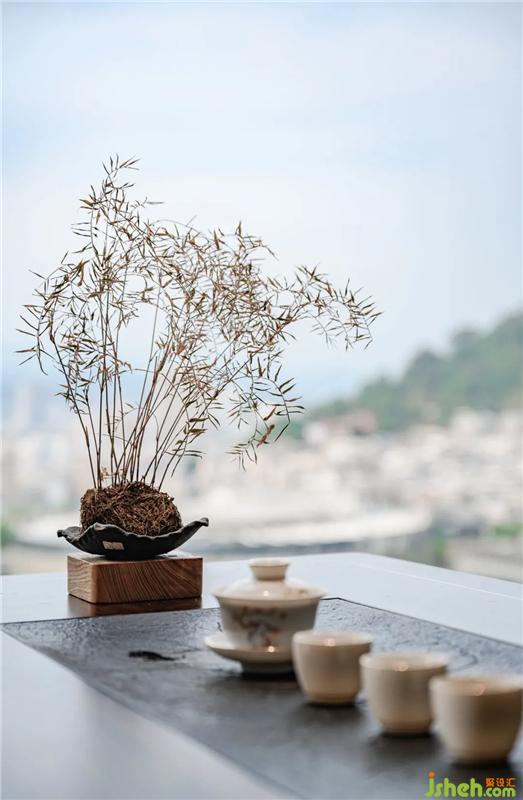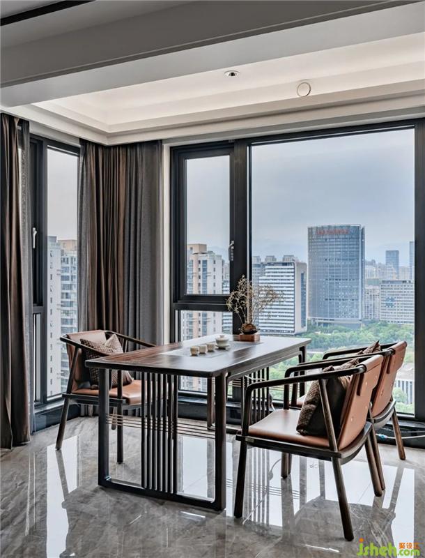 泡茶區(qū)與室外景色的糅合相襯,龍巖私宅設(shè)計茶具與雅澹的小品點綴其中,令人在東方的韻味中找尋更多現(xiàn)代生活的雅趣。溫一壺茶,清冽甘如飴;茶濃配上餅香,生活的樣子,細(xì)膩而溫柔。