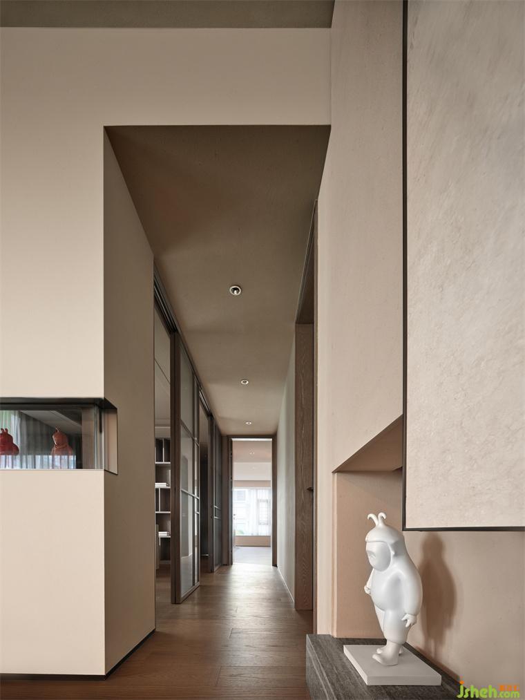過道延伸著空間細(xì)節(jié)的溫和與優(yōu)雅,理性的陣列美學(xué)、厚重感與現(xiàn)實(shí)得以結(jié)合。