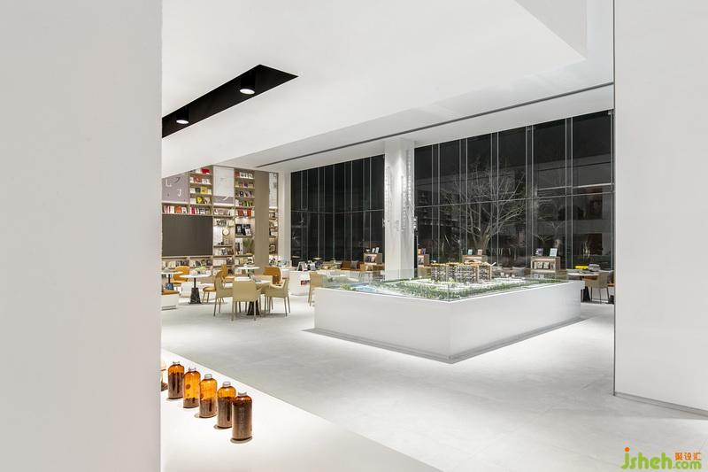 隨著動線步入洽談區(qū),仿若無意中闖入了知識的曠野。整面書墻以及隨處可見的書柜凸顯出“水木芳華”的文化符號,搭配溫潤的原木材質(zhì),將項目的文人氣質(zhì)發(fā)揮到極致。