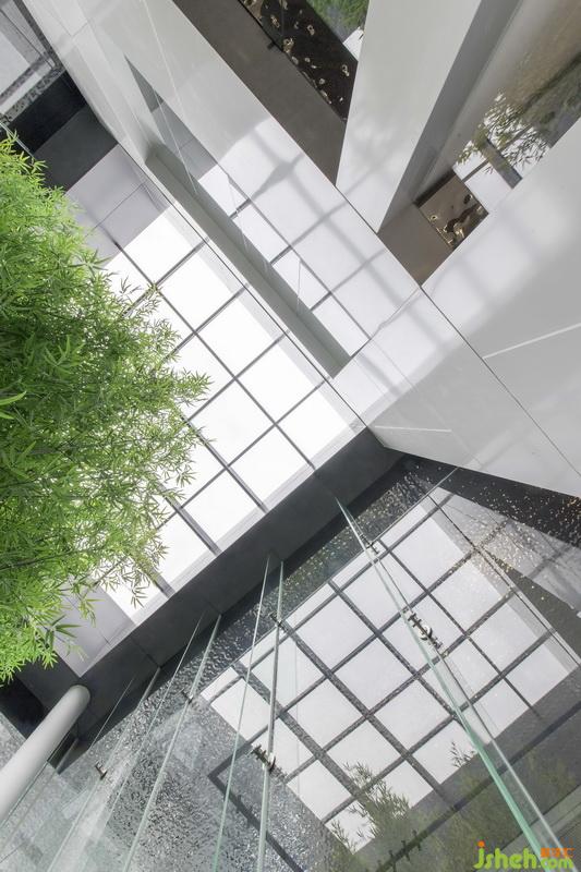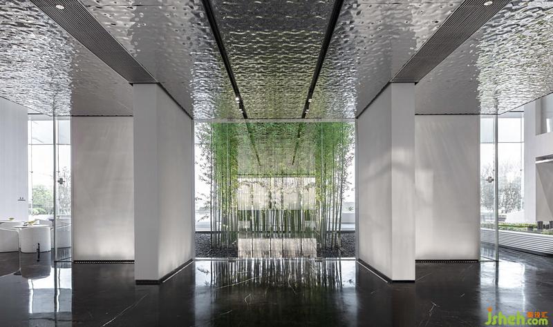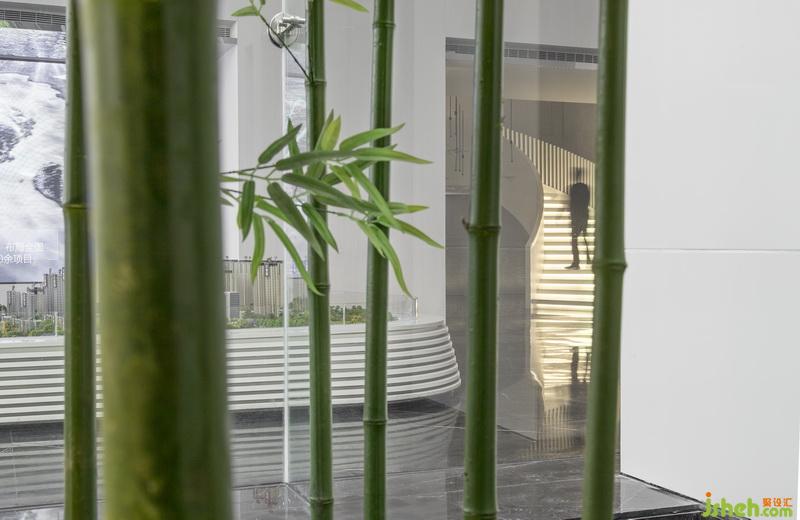 縱觀本案平面,空間結(jié)構(gòu)宛如密封的盒子,卻有水有景,實現(xiàn)空間與自然的相融。設(shè)計師于室內(nèi)開辟一處天井,天井中植一叢竹,造一方竹林。綠竹挺拔,蒼勁有力,青翠欲滴。風(fēng)起,竹搖,倒影于室內(nèi),引微涼入室。