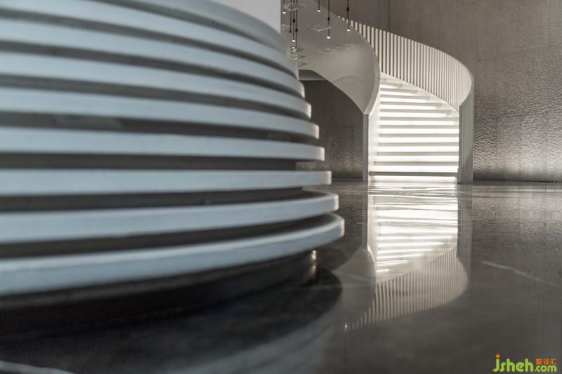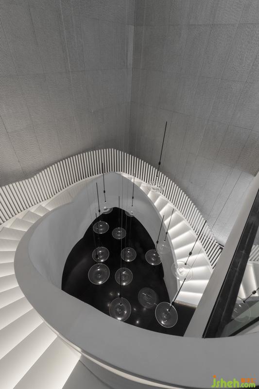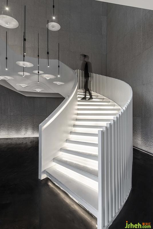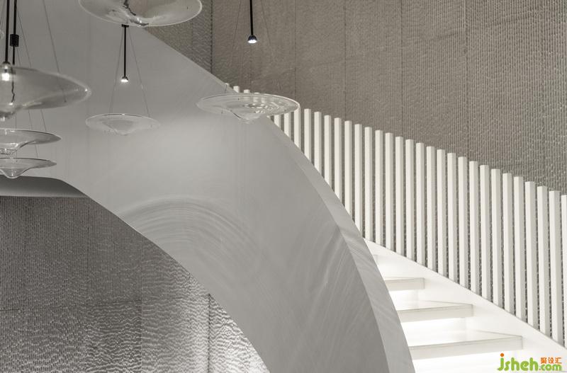 全案采用現(xiàn)代極簡(jiǎn)手法繪制空間,以純凈白為主調(diào),不作過(guò)多繁雜裝飾,偶有幾抹跳動(dòng)的藍(lán)點(diǎn)綴空間,以此突出自然人文的主題。設(shè)計(jì)師故意模糊了室內(nèi)與自然的界限,讓人即使身處室內(nèi),視野與心境卻越過(guò)空間的限制,與自然展開(kāi)對(duì)話(huà)。