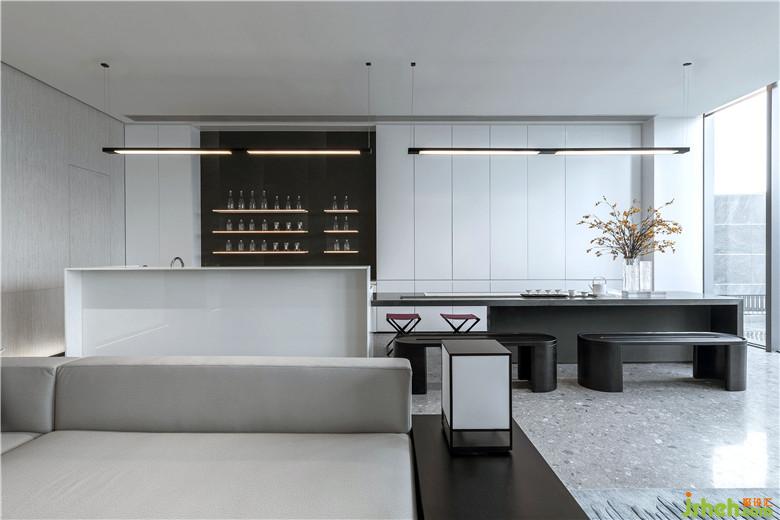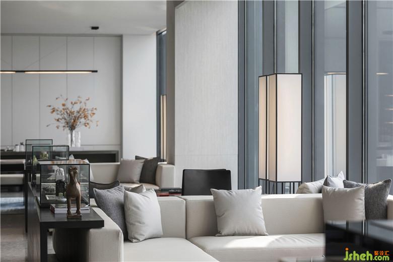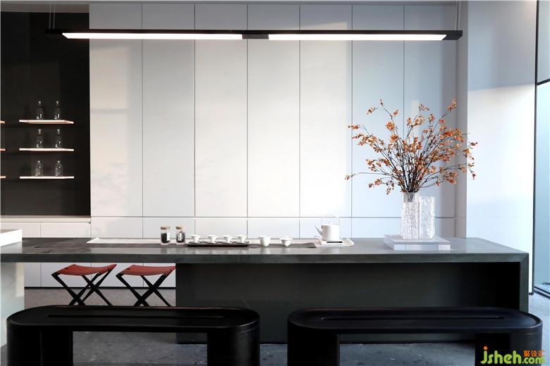 深藍單人座椅與長形灰白沙發(fā),柔和了空間的質感,讓軟裝充滿素雅的基調。無論是洽談圓桌,或是黑色茶幾,皆賦予空間秩序般的美感。