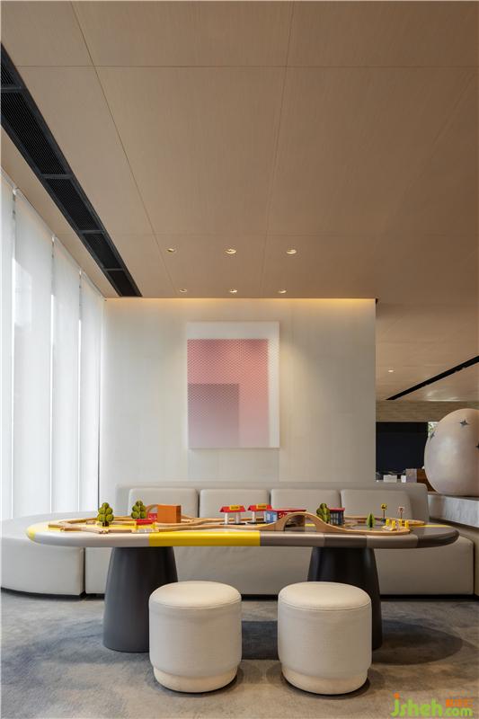 激發(fā)孩童想象力的藝術(shù)品,明快的擺設(shè),讓兒童區(qū)更顯活潑有趣。包房?jī)?nèi)圍合的沙發(fā),染上鮮艷的顏色,營(yíng)造歡快的玩樂空間。