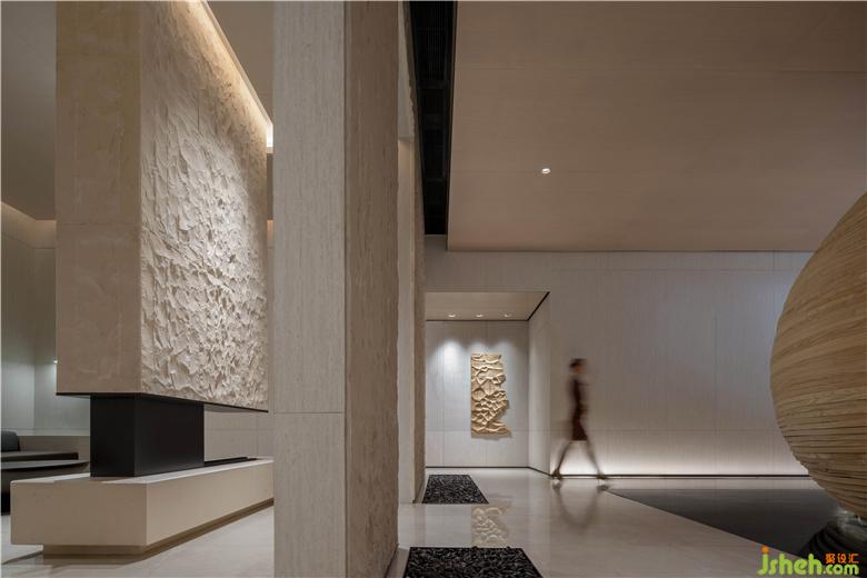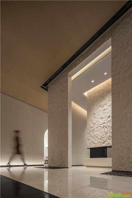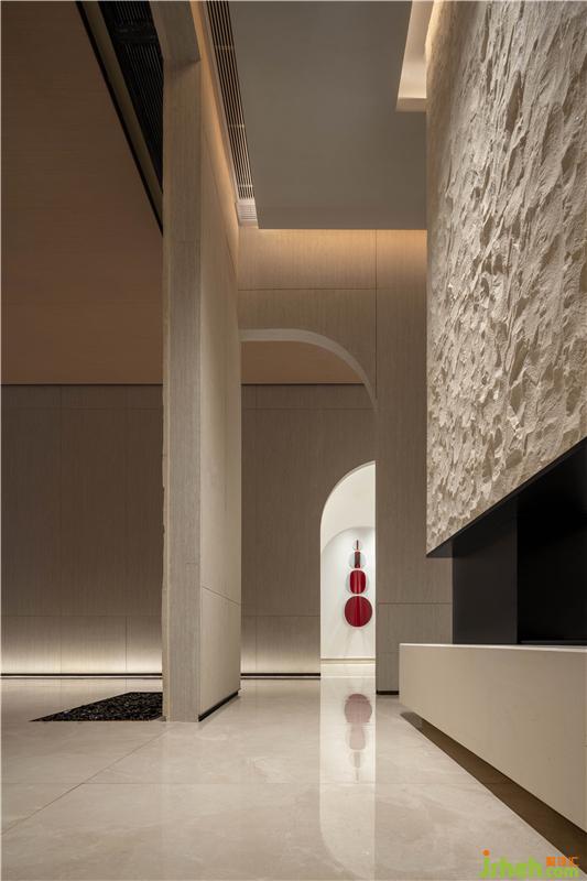 VIP洽談區(qū)延續(xù)山石粗糙的紋理,同時(shí)以簡(jiǎn)潔的幾何體塊將空間進(jìn)行簡(jiǎn)單的分割。明暗相間的光影效果,售樓處設(shè)計(jì)不同材質(zhì)之間的對(duì)比,形體的分割,讓空間演奏更生動(dòng)的韻律,再多一些戲劇性。