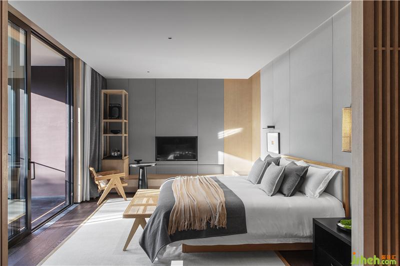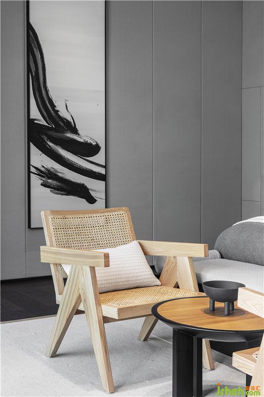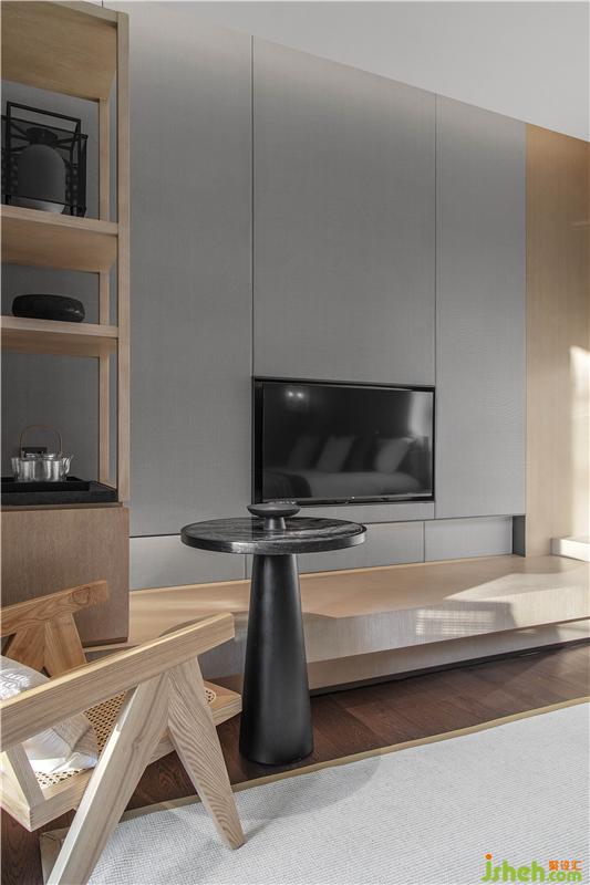 在空間本質(zhì)美的構(gòu)建上,回歸到素凈的材料及色調(diào)??头恳曰疑鳛榭臻g的基底,再以木作的溫潤進(jìn)行調(diào)和,力求呈現(xiàn)出生活的純粹,回歸空間質(zhì)美。當(dāng)多余的精美加工被去除,而回歸物料以及色調(diào)之本真,整個空間呈現(xiàn)出純粹的架構(gòu)。
