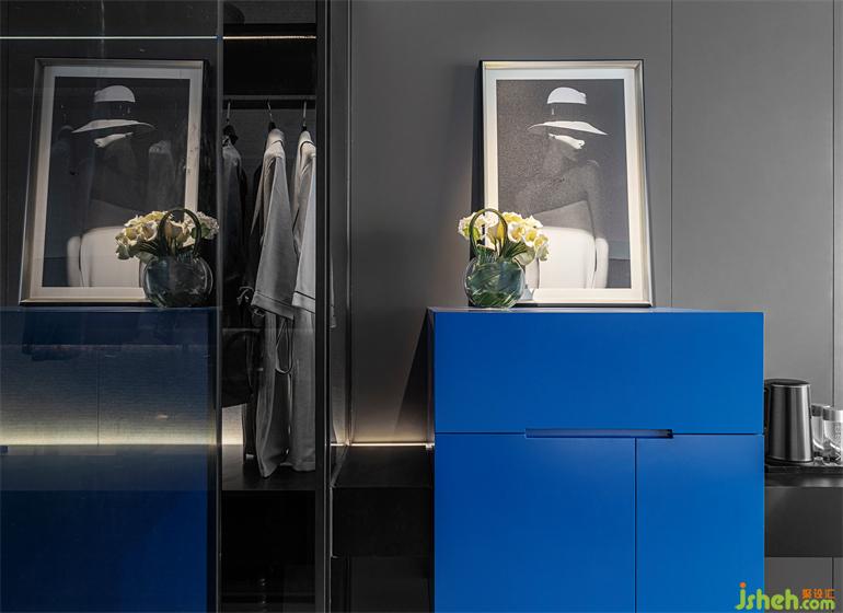 高級灰色系是空間的主調(diào),再跳躍沉穩(wěn)商務(wù)藍(lán),樣板房設(shè)計(jì)讓整個(gè)基調(diào)顯得現(xiàn)代時(shí)尚又簡約。軟裝在家具材料上用皮革及布藝,用金屬增加層次感,不同材質(zhì)的碰撞使整個(gè)空間檫出火花。從藝術(shù)畫作到現(xiàn)代感屏風(fēng),美學(xué)的形與色,大大提升了空間的魅力。摩登,是一種高級又捉摸不透的氣質(zhì)。