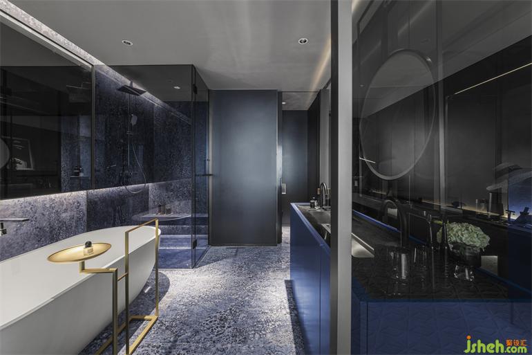 浴室線條簡(jiǎn)練利落,玻璃門設(shè)置強(qiáng)化了場(chǎng)所的穿透感。酒店式雙洗手盆設(shè)計(jì),配備齊全的雜件及洗浴用品,浴室集洗漱、化妝、泡澡功能于一體,樣板房設(shè)計(jì)增加生活的享受和幸福感。華燈初上,在水汽氤氳的朦朧意境中,沉浸于精致生活的無(wú)限歡愉。