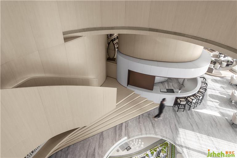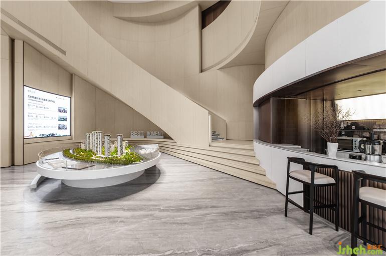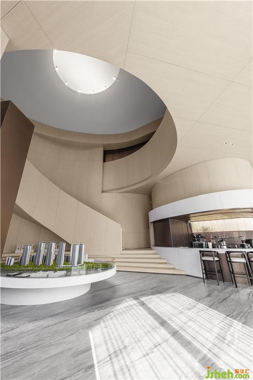 東莞卓越悅山湖花園銷售中心設(shè)計從設(shè)計手法到材質(zhì)的運用,及雕塑的象征,統(tǒng)一體現(xiàn)出登艦啟航的主題,讓顧客有登航般的尊貴感受。