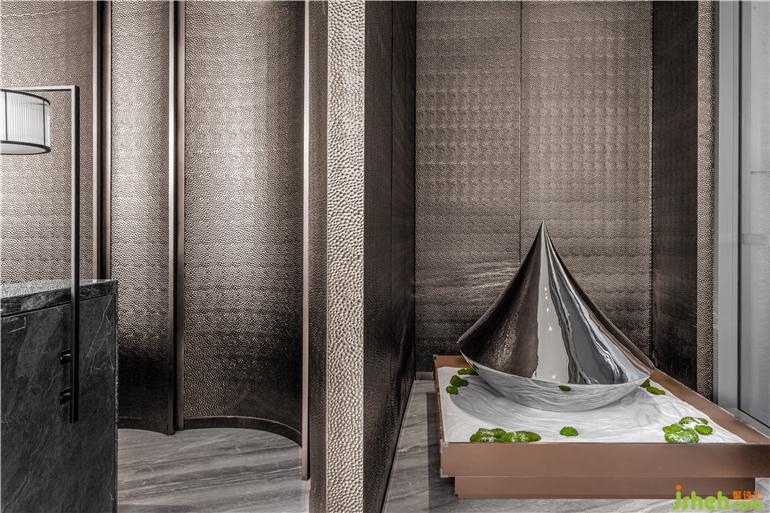 接待前廳是進入空間的第一感受,東莞卓越悅山湖花園銷售中心設(shè)計接待前廳采用對稱的設(shè)計手法,結(jié)合金屬及不銹鋼的材質(zhì),勾勒出項目高貴奢華的氛圍,同時表現(xiàn)出秩序的力量,提升空間的尊貴感。