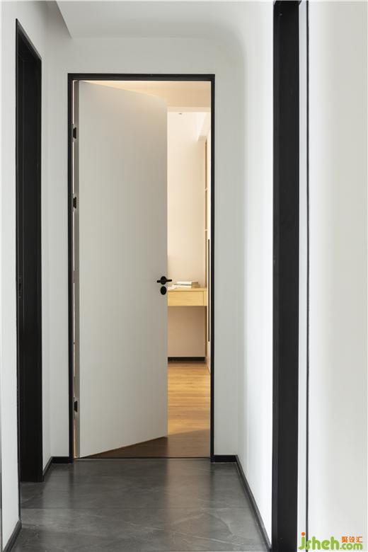 成都錦繡城裝修設(shè)計(jì)上對(duì)臥室的實(shí)木門套做了一個(gè)極窄邊框的設(shè)計(jì)。一般門套最窄只能做到4公分,我們用在案子里的做到了2公分。之前的案子極窄門套用的不銹鋼來做可以做到5毫米,為了這個(gè)門套,在做基層的時(shí)候和木工一起討論門套的收口,完全區(qū)別于傳統(tǒng)門套,安裝門套的時(shí)候守著師傅跟他溝通安裝方式,師傅一邊安裝一邊吐槽,還好最后出來的效果可以。