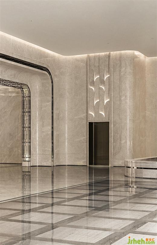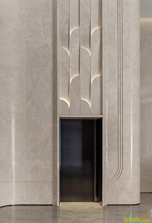 大堂設(shè)計將生活的殿堂感與儀式感記錄于流光之中。
