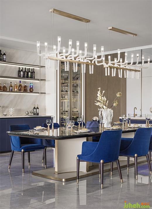 我們以雅奢元素來打造品質(zhì)與華麗的豪宅。藍(lán)色既是空間的主題也是空間的情緒,并沒有大面積鋪開來用,而是在沉穩(wěn)大氣的氛圍中進(jìn)行點(diǎn)綴,這一抹藍(lán)成為生活中的一種小驚喜,凸顯時(shí)尚與經(jīng)典,樣板間設(shè)計(jì)傳達(dá)空間的品質(zhì)以及所展現(xiàn)的生活中的喜悅。