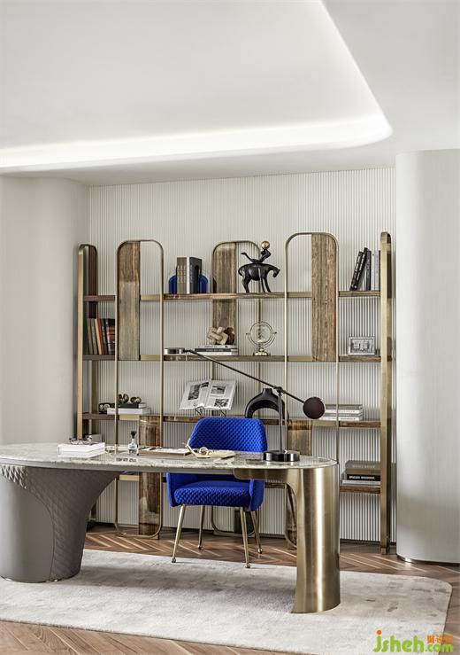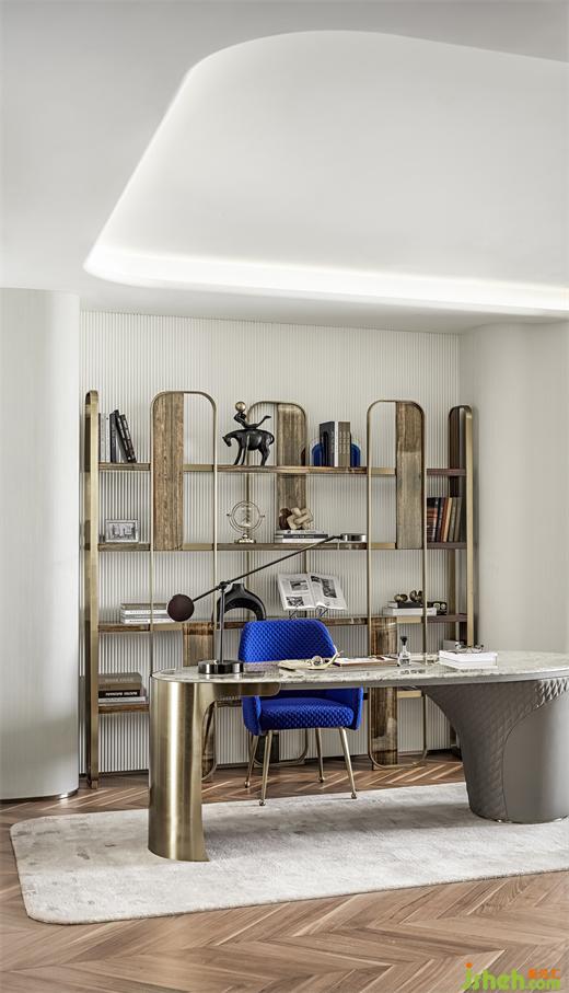 由弧線線性疊合而成,通過結(jié)構(gòu)與材料展現(xiàn)其有機(jī)的形態(tài)與美感??此撇唤?jīng)意的彎折與獨(dú)特的曲線賦予了空間自然的形態(tài),纖細(xì)的線條、有機(jī)的造型和錯(cuò)綜復(fù)雜的視覺效果,樣板間設(shè)計(jì)讓空間呈現(xiàn)出宛如被微風(fēng)吹拂著的動態(tài)感。
