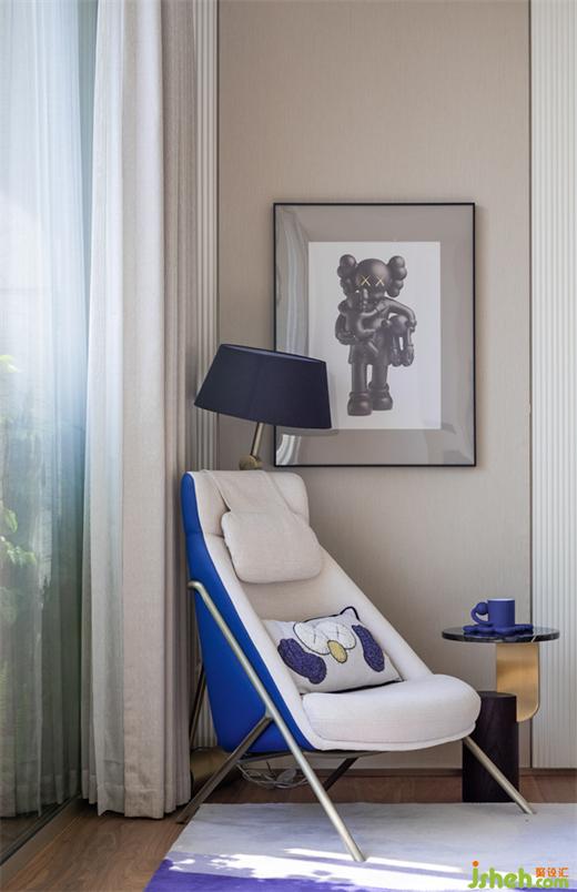空間延續(xù)藍(lán)色來凸顯童真與前衛(wèi)的基調(diào),樣板間設(shè)計(jì)意在享受這愜意與平靜的同時(shí)不忘初心,去尋找和追求自己的理想和興趣。
