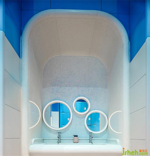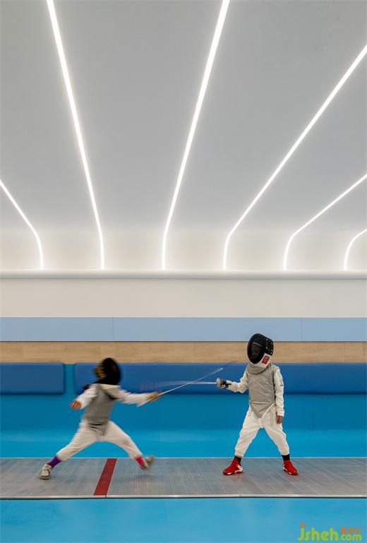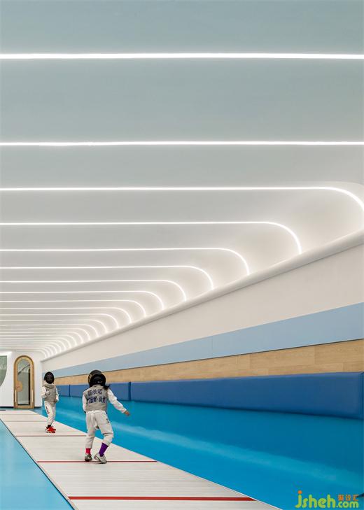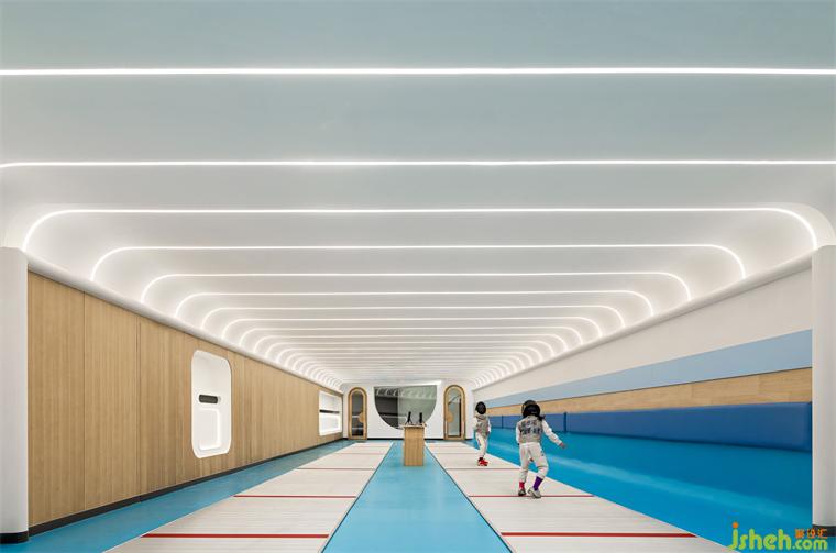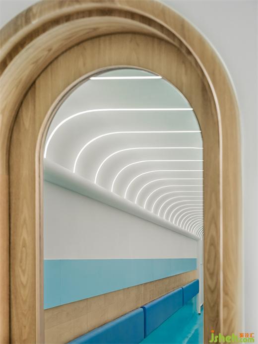 自上而下的開窗形成天花的視覺焦點(diǎn),廈門幼兒園設(shè)計(jì)以流星劃過的軌跡提取設(shè)計(jì)元素形成光的記錄與序列,聯(lián)動的元素提取并不旨在傳達(dá)符號化的表象,而是試圖去傳達(dá)對觸及事物結(jié)構(gòu)本源的探尋與回歸自然堅(jiān)守本我的追求。