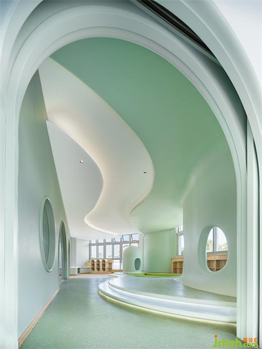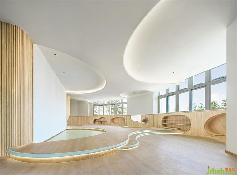 與自然同頻,流淌著獨(dú)特而細(xì)膩的情感,風(fēng)吹動在自然中塑造了優(yōu)美又動感的弧面造型,廈門幼兒園設(shè)計(jì)講述空間的延續(xù)與聯(lián)系。