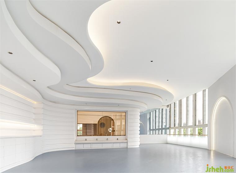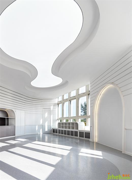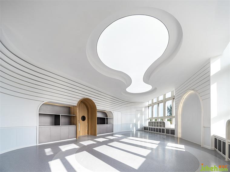 廈門幼兒園設(shè)計(jì)以云的層疊軌跡為核心貫穿空間,用豐富的疊級(jí)造型塑造空間,墻面和頂面更加完整化一體化,讓空間實(shí)現(xiàn)統(tǒng)一和純粹。