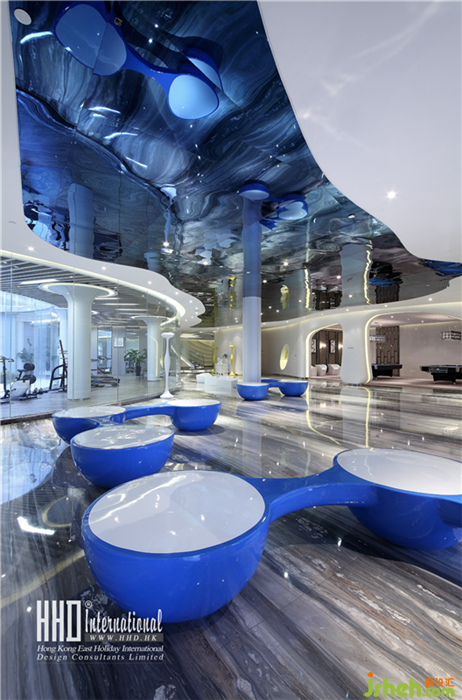Pure 33with smooth contours as the core andthe overall tone in white, combinedwith shades of blue steel and cold blue line furniture. Blue and white mix letpeople have quiet and peaceful visual experience. The club has also become ecological, low-carbon coastal living base.