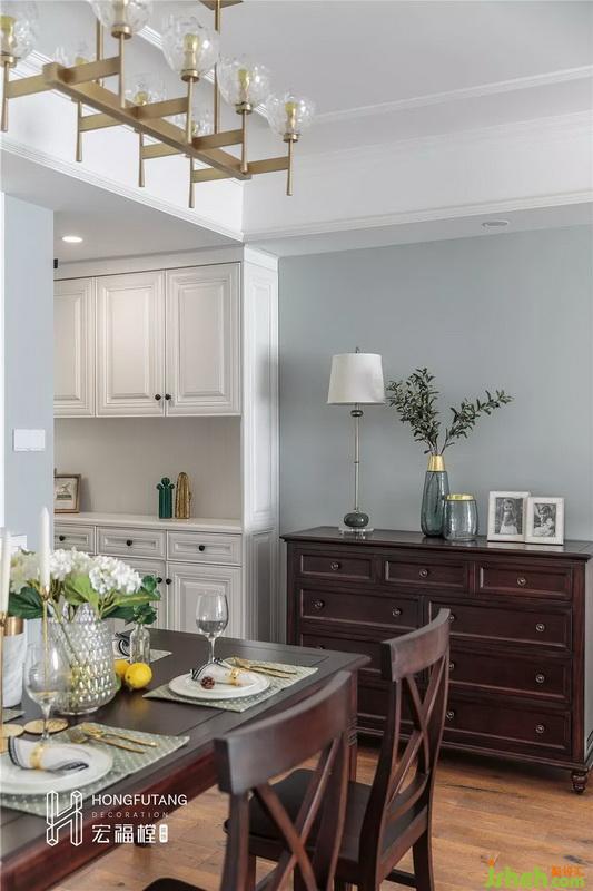 入戶處增設(shè)了門廳玄關(guān),由地至頂,起到了很好的視覺緩沖效果,保護(hù)了客廳與餐廳的私密性,還提供了一定的儲(chǔ)物空間;中鏤空設(shè)計(jì)增添出入戶放置手包、鑰匙、雨傘的空間,選用白色與房屋整體色調(diào)十分和諧,注重實(shí)用性的同時(shí),也增加了空間的美感度。