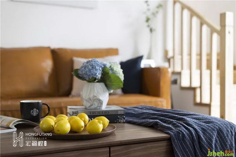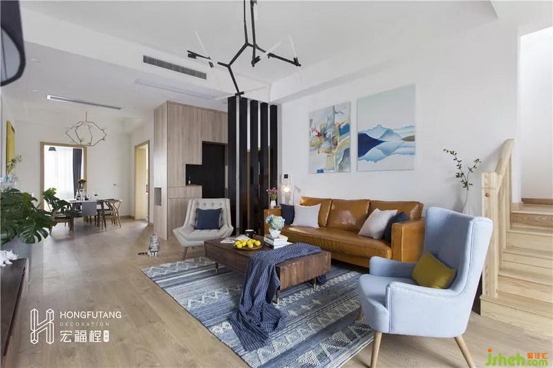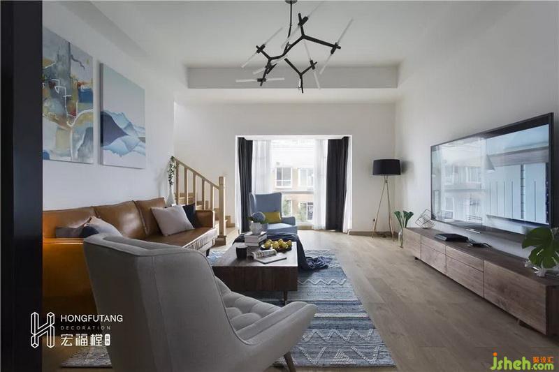 客廳空間面積較大,所以在客廳家具的選用上都選用相對大氣的款式,選用本木色和大白墻的搭配,利用家具最原始的顏色來突顯對自然的敬畏和對本真生活的追求。