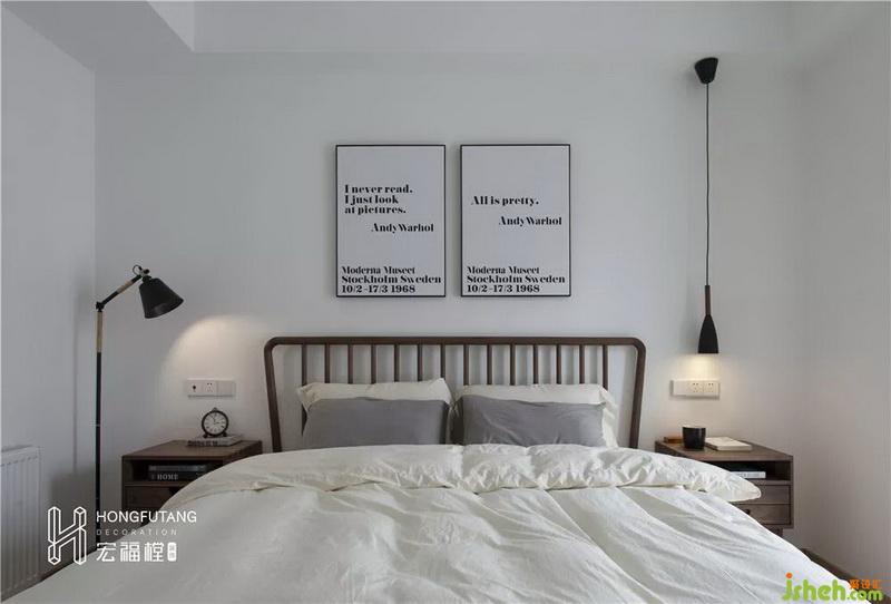 主臥空間以簡(jiǎn)約為主,灰黑白三色搭配木色出現(xiàn),選用藍(lán)色作為軟裝色彩,更加親近自然,由于主臥空間本身有很大的衣帽間,所以在主臥內(nèi)只設(shè)立了斗柜作為日常收納和物品擺件使用。