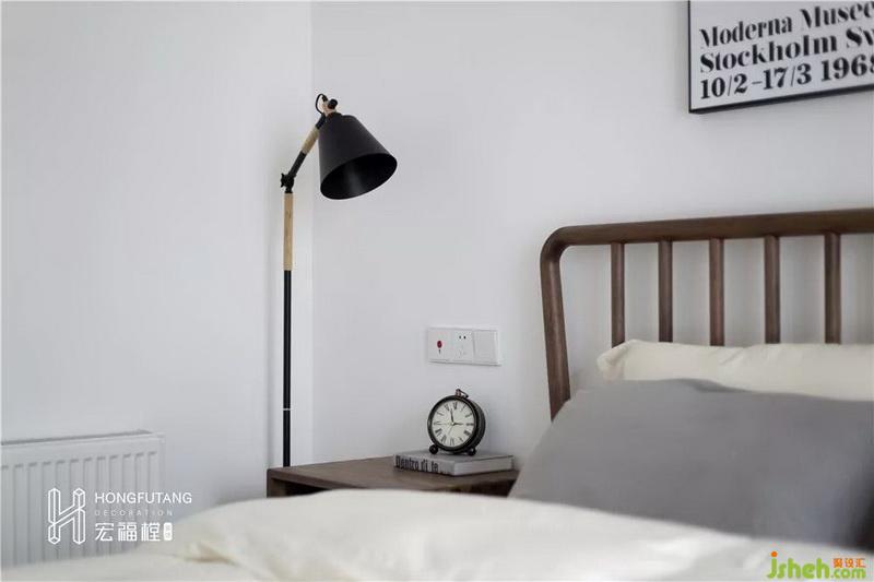 次臥空間面積相對(duì)較小,所以在布局上,將衣柜融入墻壁之中,選用深淺不一的木色家具突顯空間深度,在裝飾排列上還是以簡(jiǎn)約為主。