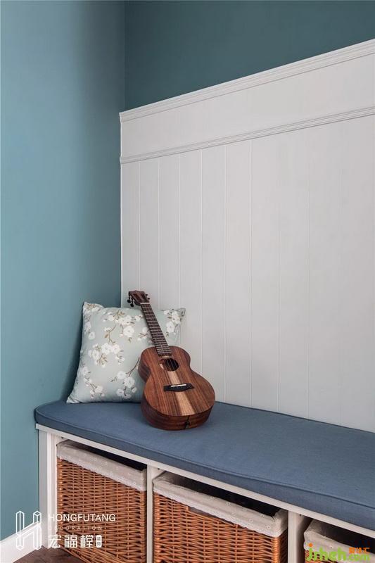入戶(hù)空間相對(duì)獨(dú)立,在入戶(hù)門(mén)廳增添?yè)Q鞋掛衣區(qū),便于空間收納,靠墻位置用白色木板,減少墻體接觸的污染,也綜合局部的深灰綠,讓人有一回到家便放松下來(lái)的歸屬感。