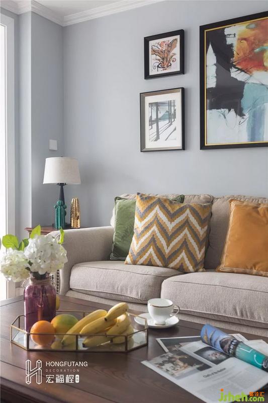客廳軟裝選用粉色、黃色、綠色來裝點空間,都是賦有生機的代表色彩,將整個客廳氣氛活躍,莊重不失隨意,精致不失靈氣。