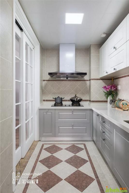 入戶墻面后退預(yù)留出鞋柜位置后,廚房空間有所減少,室內(nèi)設(shè)計(jì)師選用L型櫥柜,能夠滿足我們所需的儲物收納功能不受影響。