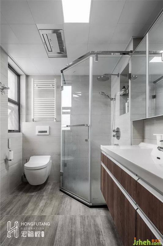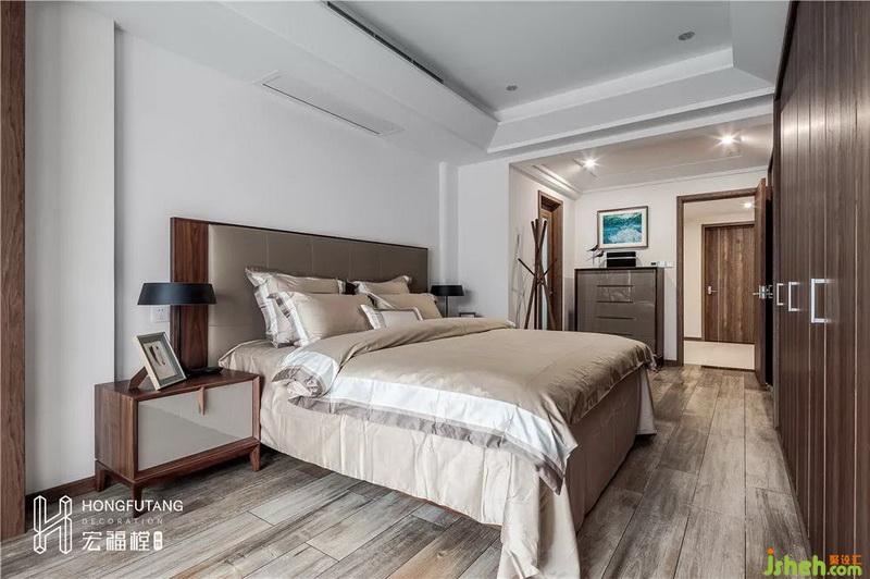 主臥門洞往左平移60cm后,原本只能容納1.9m長的衣柜,改動后可容納5.7m長衣柜,收納空間擴大三倍。主臥吊頂采用斜面設計,通過漸變的方法使空間平緩過渡,解決主臥室到主衛(wèi)生間之間60cm的大梁對空間造成的壓迫感,視覺上空間“更高”,更有層次感;主臥室門洞的位置調整,向左平移60cm,為主臥衣柜留出空間,使得整個衣柜可以拉通靠墻擺放,增加了收納空間;靠門左側設立斗柜,可以擺放物件和收納小件物品,方便分類,略微遺憾的是斗柜上面的燈光位置沒有充分考慮,燈光效果有所減弱。