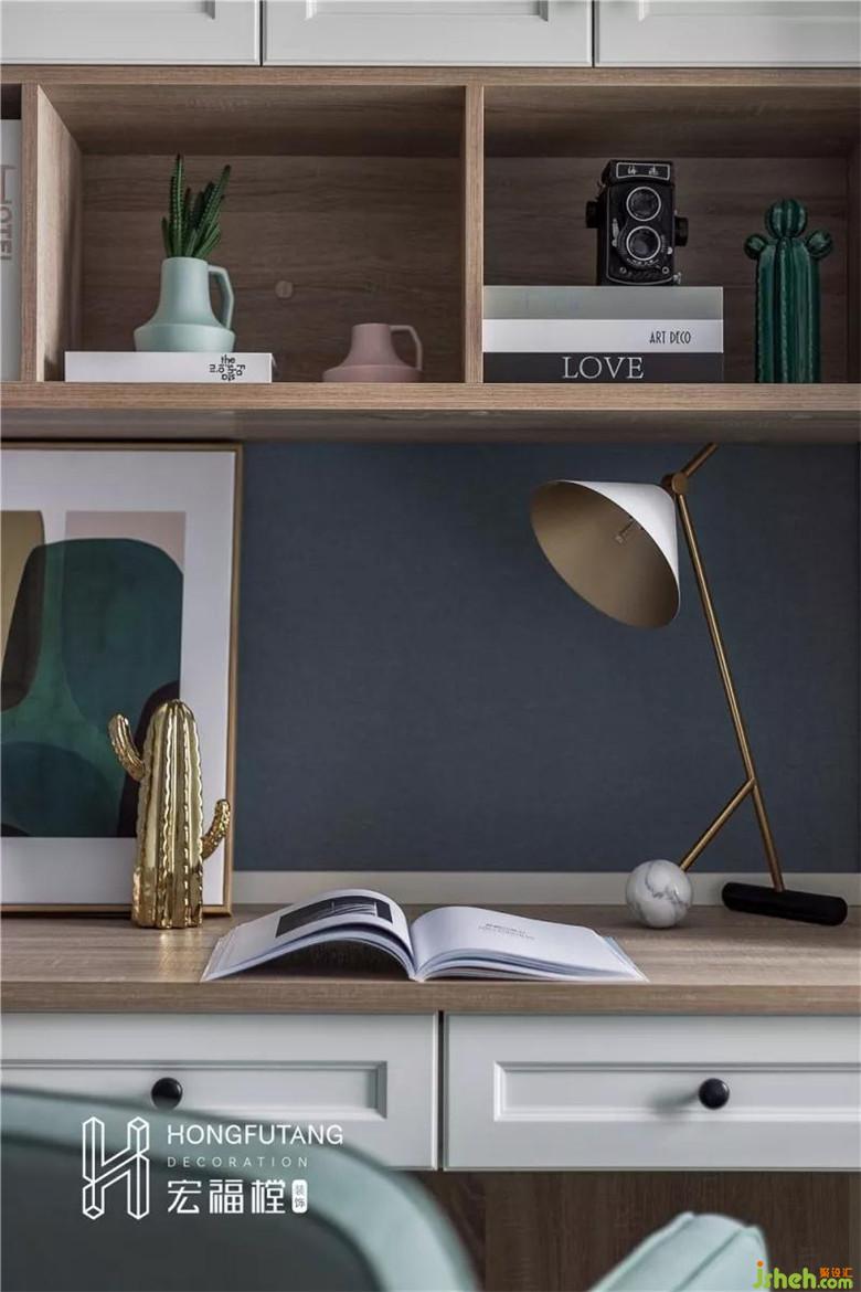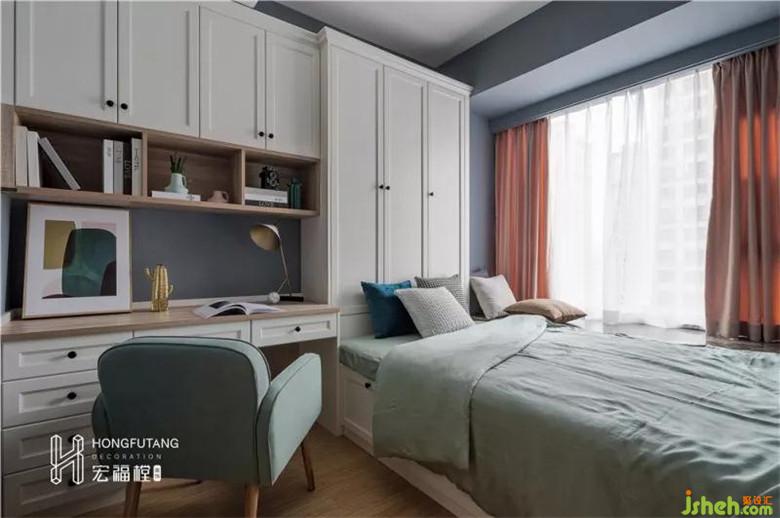 室內(nèi)設(shè)計(jì)師根據(jù)次臥有限的空間,次臥的家具采用榻榻米、書桌、書架、衣柜一體化定制,能夠合理規(guī)劃空間的功能區(qū),統(tǒng)一次臥空間風(fēng)格,也使得有限的空間達(dá)到最大的功能化使用。