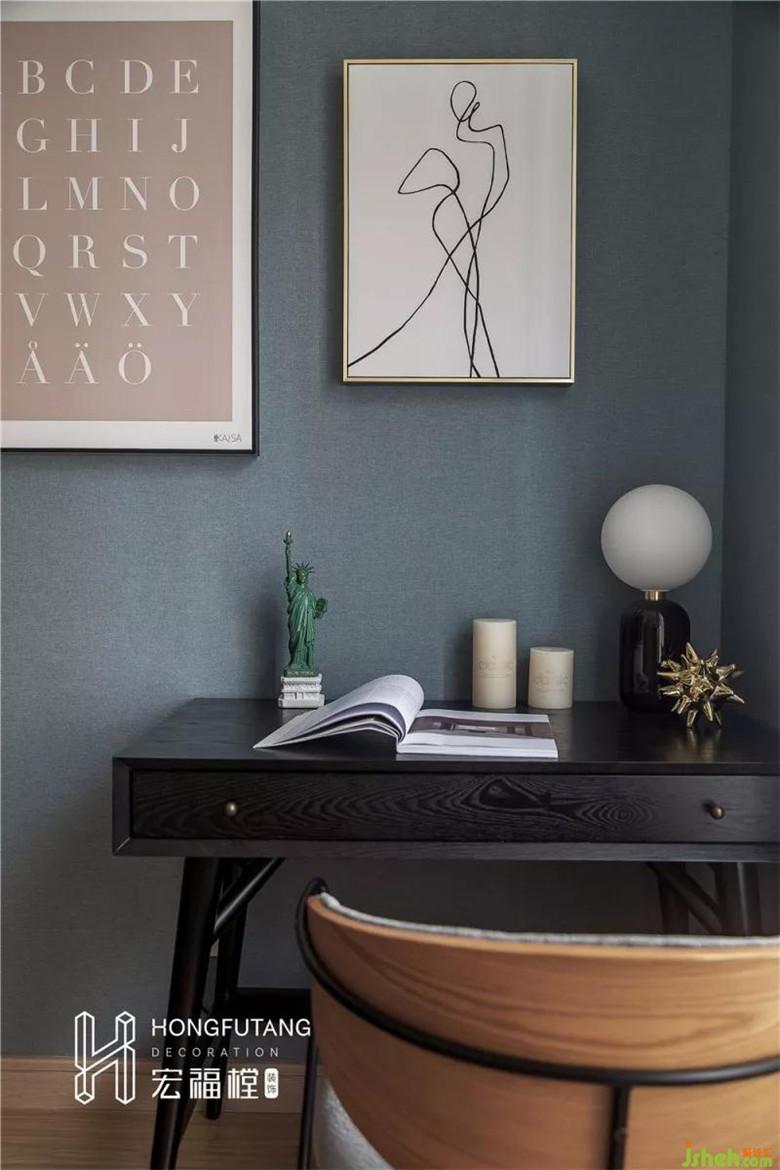 相對(duì)而言,整個(gè)空間面積有限,每個(gè)房間功能性都是多樣化,衣帽間除了作為業(yè)主日常衣物、首飾、鞋靴存放的地方,也為女主人提供了化妝臺(tái),彌補(bǔ)了主臥缺少的功能性設(shè)施;室內(nèi)設(shè)計(jì)師考慮到家中常駐兩人同時(shí)辦公造成的打擾,也利用簡易化妝臺(tái)建立了相對(duì)簡單的閱讀辦公區(qū),一空間三用。