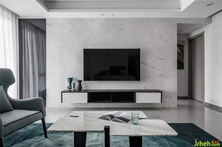 在電視墻的設計上,考慮到右側為通道空間,左側位置按比例選用黑色鏡面,中間選用白色大理石作為背景,黑白結合平衡了空間重心,也避免大面積白色的空洞;客廳空間采光優(yōu)良,選用無主燈設計,空間更加簡潔。簡約不等于簡單,看似簡單的堆砌和平淡的擺放,都是每一次設計的延展。