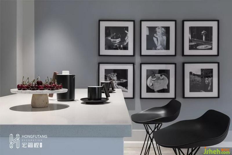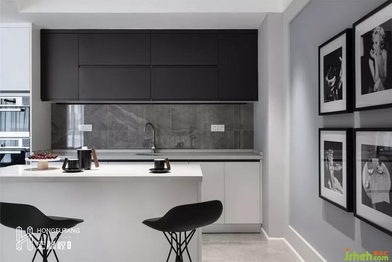 西廚區(qū)域的設(shè)置,不需要過于繁復,借黑白的色彩差異、大理石點綴,摒棄一切裝飾與華麗,追求高度真實的美。
