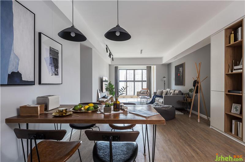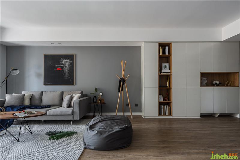 本案以淺灰色系為主,不同明度的灰色系列加以運用,給空間無限遐想,給人心神寧靜之美,便于人在空間里面的獨立思考。設計舍去繁雜的造型裝飾,在原本功能構建上面考慮設計,盡可能塑造功能美學?,F(xiàn)代簡潔的白色木質柜子,配以自然溫馨的木質門板,稍顯粗礦的電視臺板餐桌臺面茶幾及邊幾,都是樸素、自然、親近的美好。自然材質和現(xiàn)代藝術的組合,給整個空間形成了巧妙的和諧,加以鐵藝元素的點贊,給整個空間帶來趣味感。室內(nèi)設計師