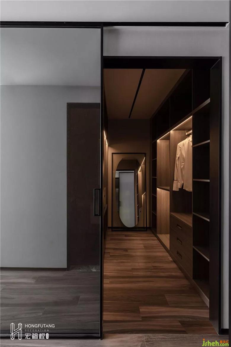 對于衣帽間的渴望,我想是每一位女性的期待。改造后的獨立衣帽間,能夠滿足業(yè)主容納滿滿的包包、飾品、服飾。通頂?shù)臉O窄鏡面玻璃吊滑門,即不占據(jù)衣帽間的使用空間,并且通過鏡面反射,拉伸空間視覺層次。一場場時尚大片既視感從里迸發(fā)。