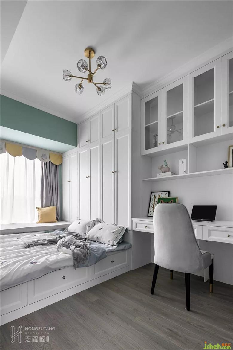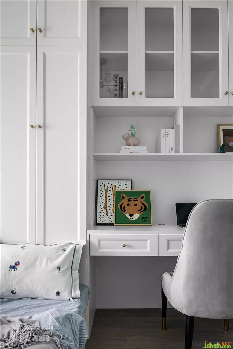裝修公司在干凈整潔的空間里點(diǎn)綴一些適當(dāng)可愛(ài)的元素,大量的留白像極了“一個(gè)給孩子預(yù)留的富有創(chuàng)造性的容器”。