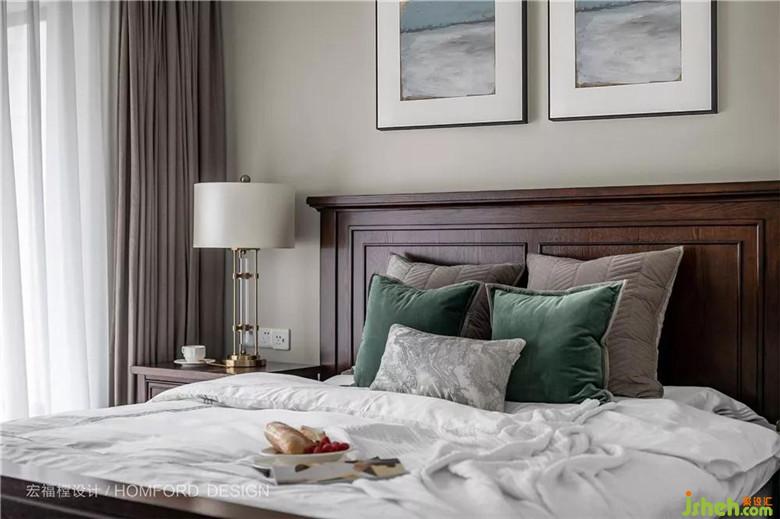 室內(nèi)設(shè)計(jì)師選用黑胡桃木色床迎面而來的是美式浪漫海岸風(fēng)情,巧妙的運(yùn)用室內(nèi)光線變化,熏染出一份日出而作,日落而息的寧靜與閑適。