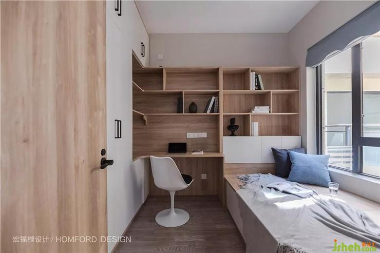 多功能房是一個(gè)相對(duì)靈活多變的房間,現(xiàn)是屋主的書房兼客臥,以后可變動(dòng)為兒童房。內(nèi)嵌式墻體柜和榻榻米儲(chǔ)物空間充分被利用了起來。