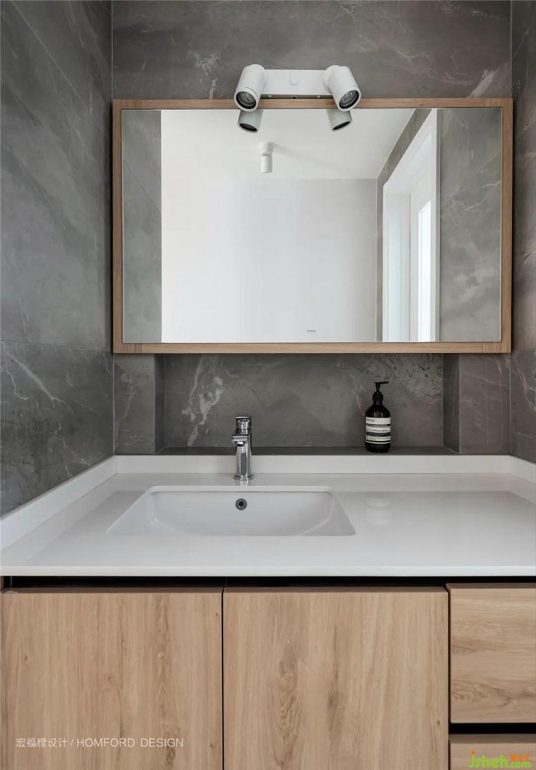 主衛(wèi)延續(xù)了設(shè)計(jì)整體的簡(jiǎn)潔利落,拆分重組后化妝臺(tái)空間得以舒展,營(yíng)造出一種干凈純粹、充滿(mǎn)可探究細(xì)節(jié)的空間感受。