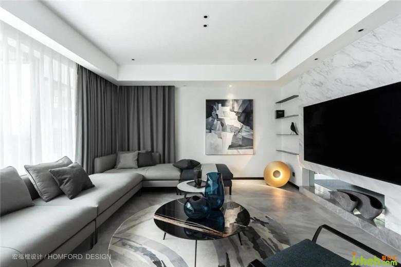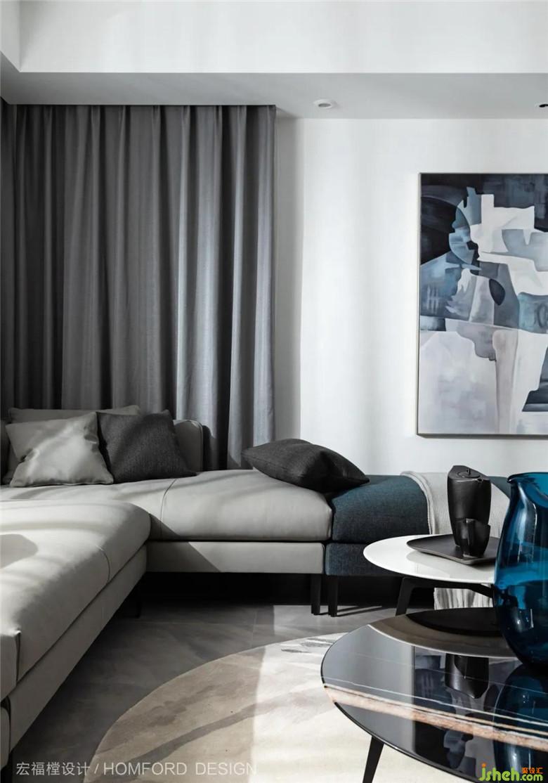 黑白的明暗對比,藍綠色調(diào)在空間疊加、漸變點綴空間,不多加修飾,質(zhì)樸、純粹,卻有一股溫潤的態(tài)意。