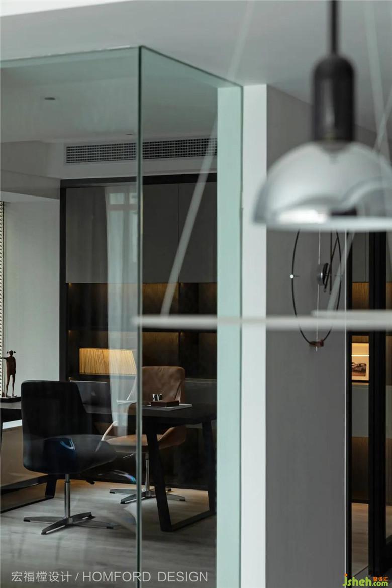 通過(guò)點(diǎn)、線、面、體等形式視覺元素的穿插組合,以玻璃替代了墻體,實(shí)現(xiàn)空間的相互連貫,又構(gòu)成空間的相互分隔。