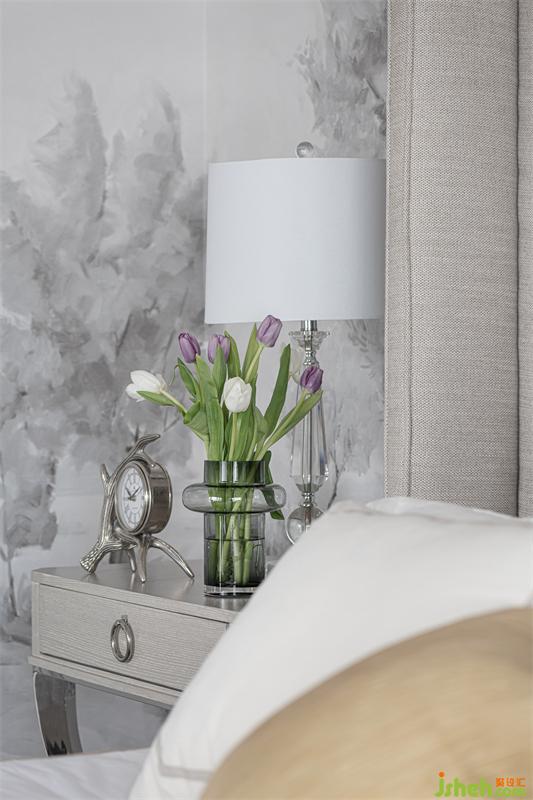 床頭背景墻為水墨風(fēng)景手繪壁畫,并進(jìn)行左右兩側(cè)包圍延展,更具安全感的同時(shí)達(dá)到最佳的營(yíng)造氣氛。我們希望在美景如畫的自然里,讓時(shí)光慢下來(lái),使身心整個(gè)融入其中,享受家?guī)?lái)的幸福之感。
