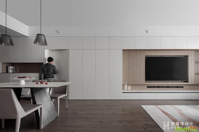 家居裝修利用隱形門將主臥、書房空間與公共區(qū)域隔開,動線變得十分有趣??此埔挥[無遺,卻亦別有洞天。除了居住者本身,第一次來訪的親友,都沒有人能馬上找尋到門的正確位置。