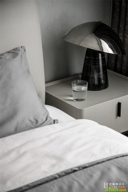 床頭墻面設(shè)計為冰川灰硬包造型,與頂面亮白色組合顯得清爽純凈。為了不顯單調(diào),地面重鋪的木板選擇混合色彩,溫和的氛圍驅(qū)散了現(xiàn)代感帶來的涼意,讓睡眠空間舒適愜意。