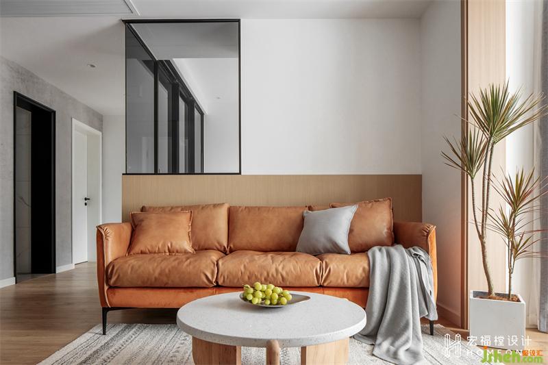朝北的空間光線會(huì)受到影響,所以陽(yáng)臺(tái)納入客廳一并使用,并將緊鄰的隔墻與房門進(jìn)行拆除,打破局限的原始空間感,設(shè)計(jì)為簡(jiǎn)潔有力的玻璃立面,讓更多的光線照射進(jìn)來(lái)。