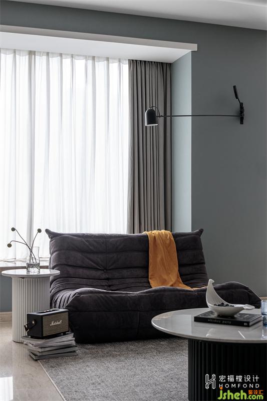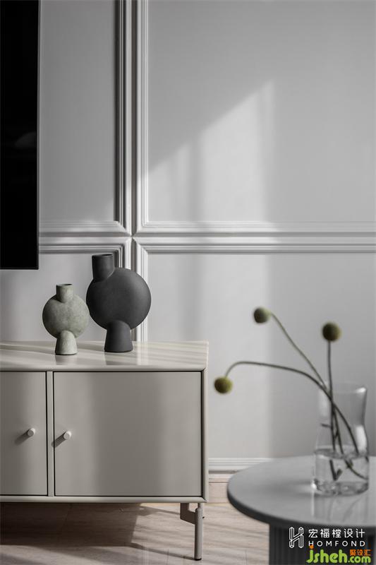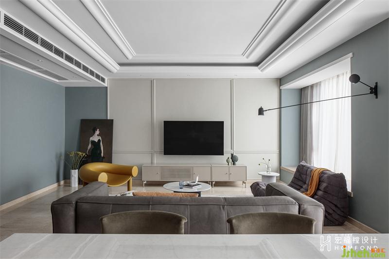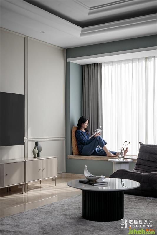 電視墻雙拼兩圈45mm石膏線,迸發(fā)的力量感與原始頂面線條進行融合。米色與其他色調(diào)完美融合,為空間帶來天然的優(yōu)雅魅力。天氣好的時候,客廳的飄窗區(qū)域就會被陽光灑滿,女屋主常常會在此喝茶、看書,這種放松自在的狀態(tài)是她為自己營造的純粹世界。