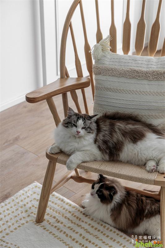 九只貓咪是老天爺賜給夫妻二人的珍貴禮物,除了考慮彼此的感受,同時(shí)也注重著它們的居住體驗(yàn)感。閑時(shí)會(huì)非常有耐心地對(duì)空間進(jìn)行清掃,確保日常的干凈和舒適。