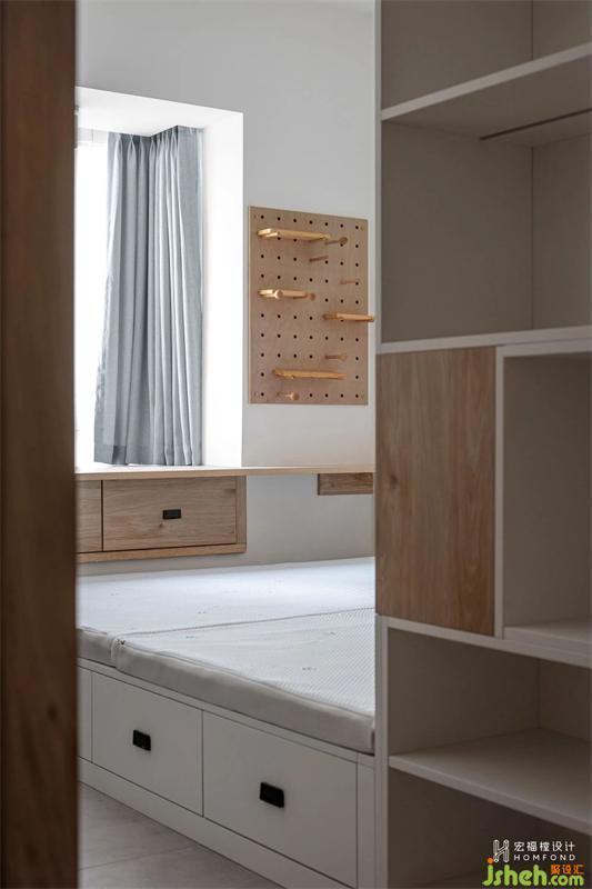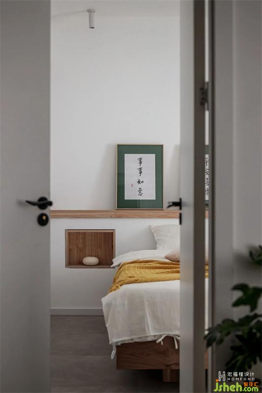 一間次臥多種功能,兼具客房、書房、儲(chǔ)物間、未來兒童房,使用天然原木材料帶來寧靜感,空間自然舒適。