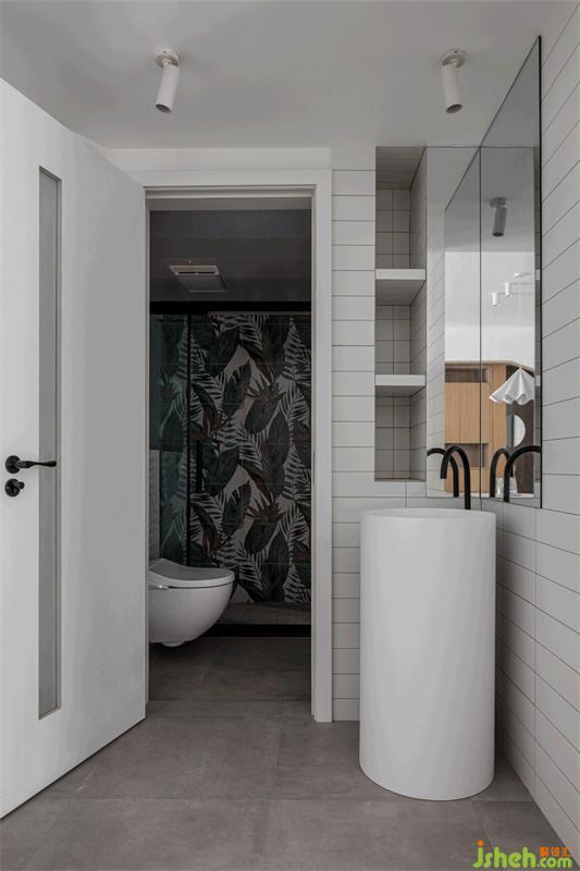原始衛(wèi)生間面積無法滿足生活需求,我們將其進(jìn)行干濕分區(qū),外部墻側(cè)位置設(shè)計(jì)為干區(qū),與餐廳空間融合,生活動(dòng)線更顯便捷。內(nèi)部應(yīng)景玄關(guān)樹屋造型,利用極具自然意味的花磚提升空間氛圍,靈動(dòng)且不泛濫。